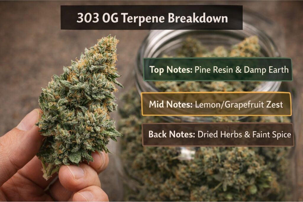 The same 303 OG terpene breakdown was clearer when I dried slowly and cured steadily. Cooler nights kept the citrus brighter; hot, dry rooms pushed the 303 OG terpene breakdown more woody.