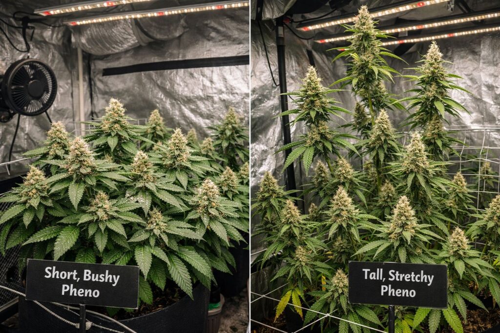 What stood out to me across runs was the phenotype range. One plant stayed squat and bushy through veg with tighter internodes and broader leaves. It was easy to shape into a flat canopy, and it felt like it wanted to be topped and spread wide. The other plant was taller, with a bit more spacing between nodes, and it stretched more noticeably after the flip. That taller pheno stacked faster in weeks 4–6, but it also asked for support sooner because the tops got heavy before the branches fully lignified. I ended up using a net and a few stakes earlier than planned just to keep the canopy from leaning.