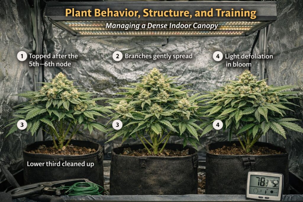 My experience matches common 3X Crazy bud structure notes: short node spacing once the roots are established, a sturdy main frame, and quick canopy thickening after topping. The upside is easy stacking under decent light. The downside is interior humidity pockets if you don’t open the plant early.