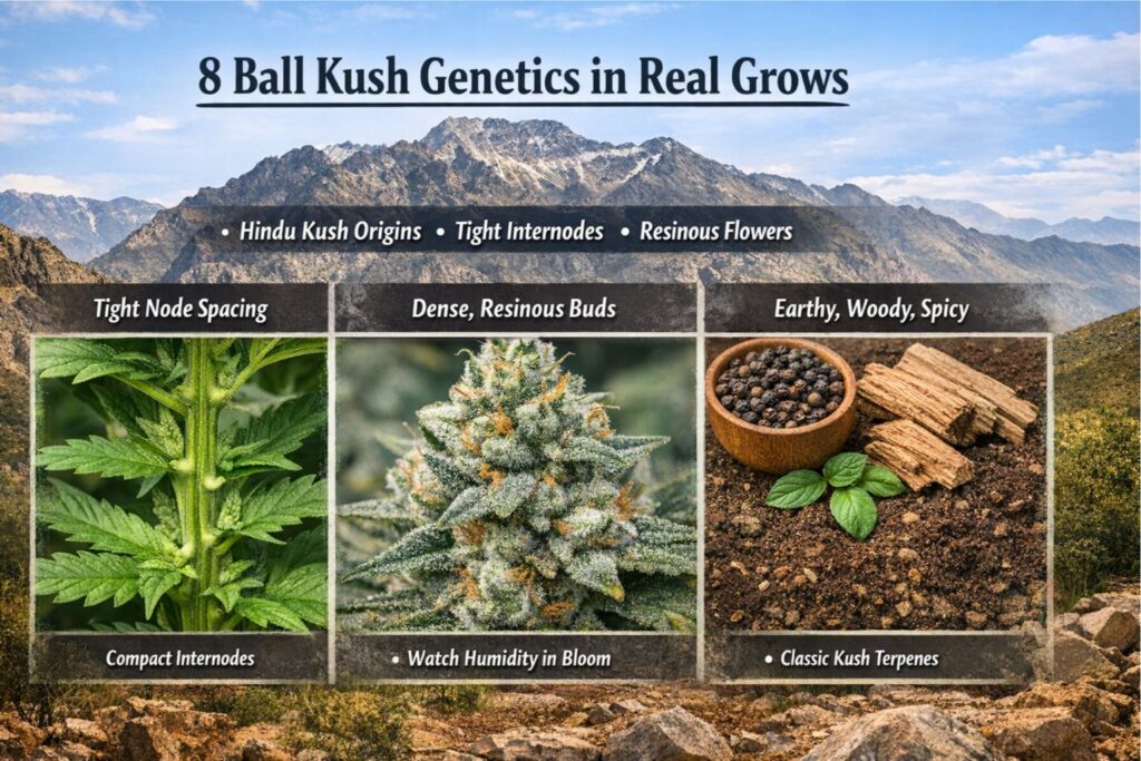 Before we get into effects and flavor: “8 Ball Kush” can vary by breeder. Treat the 8 Ball Kush strain name as a family label, then judge the plant in front of you. In my space, I saw consistent structure and a very repeatable aroma, but I also saw meaningful variation from one plant to the next.