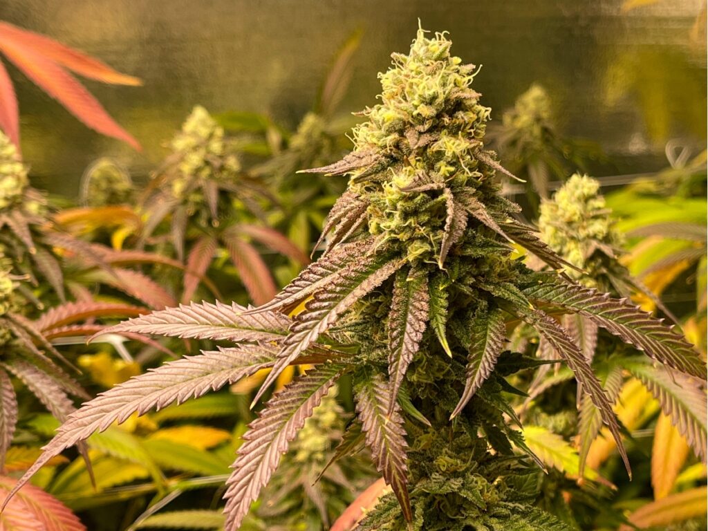 The aroma is pungent and skunky, with undertones of citrus and herbal notes. It’s a distinctive scent that reflects its robust terpene composition.