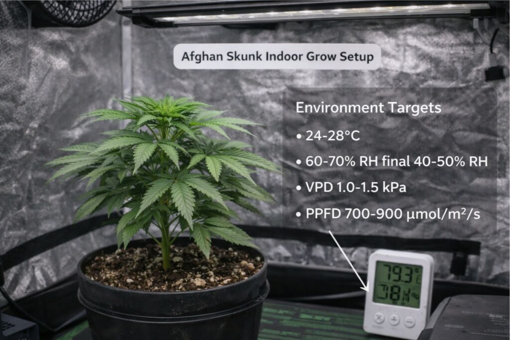 Afghan Skunk indoor grow setup: the environment targets that keep it on rails