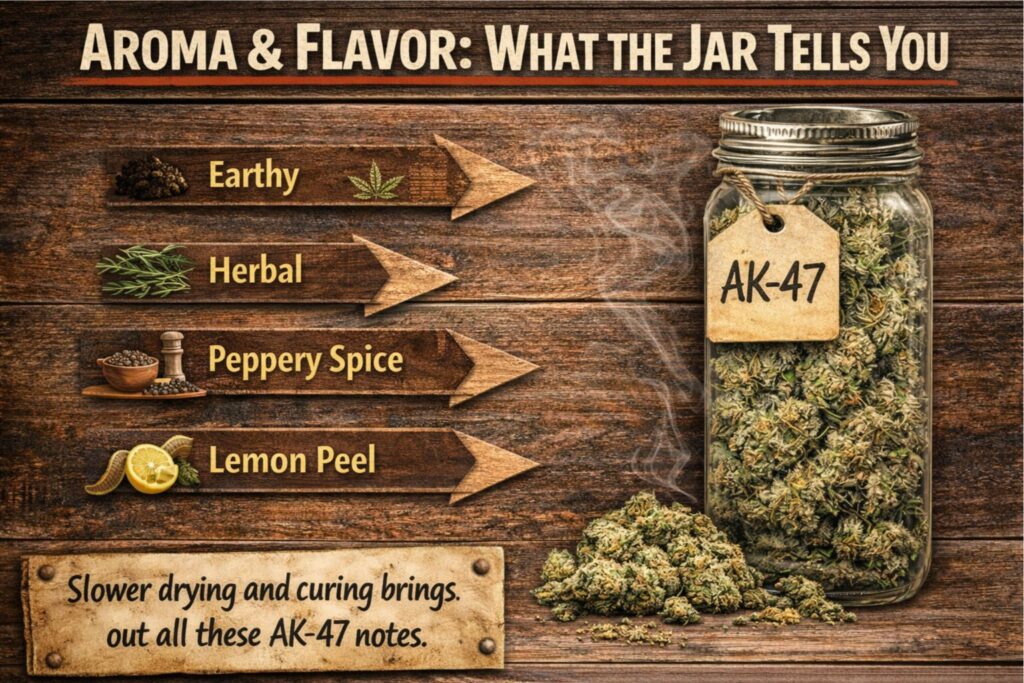 When AK-47 is grown and cured well, my AK-47 smell and taste notes land in a repeatable range: