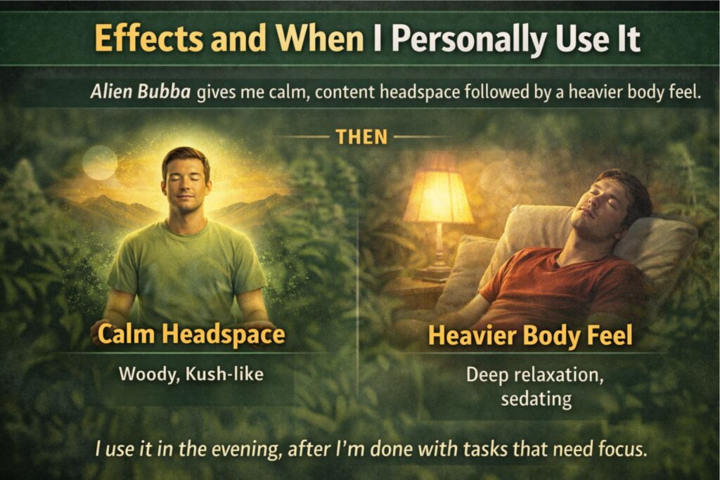 When I hit that citrus-leaning expression, the Alien Bubba terpene breakdown becomes more layered and the smoke feels cleaner after a longer cure.
