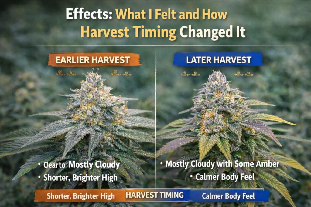 Even within this Alpine Blue Strain Review, I’ll say it again: phenotype matters. My Phenotype A leaned heavier, and Phenotype B leaned a bit brighter at the same dose.