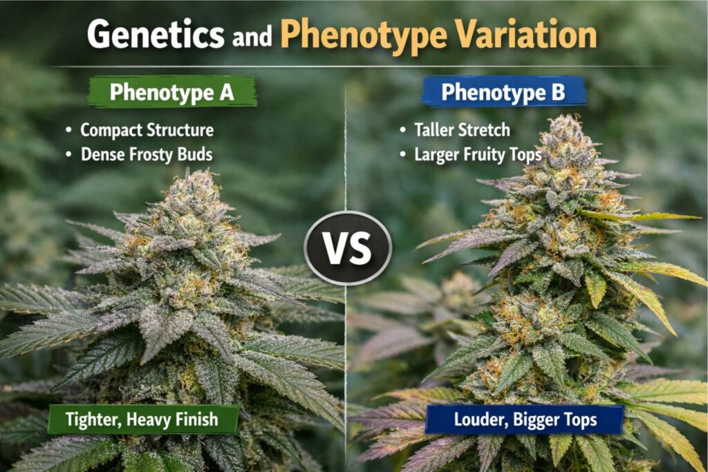 I don’t have lab-confirmed lineage for Alpine Blue, so I focus on repeatable observations instead of a perfect family tree. In my room it grew like a true middle hybrid: branching well, stretching moderately after flip, and responding well to training.