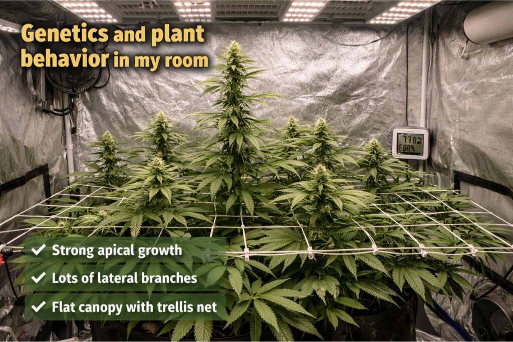 I’ll say it again because it matters: American Haze trellis training is not just for big rooms. Even in a tent, a simple net helps manage height and keeps bud sites in good light.