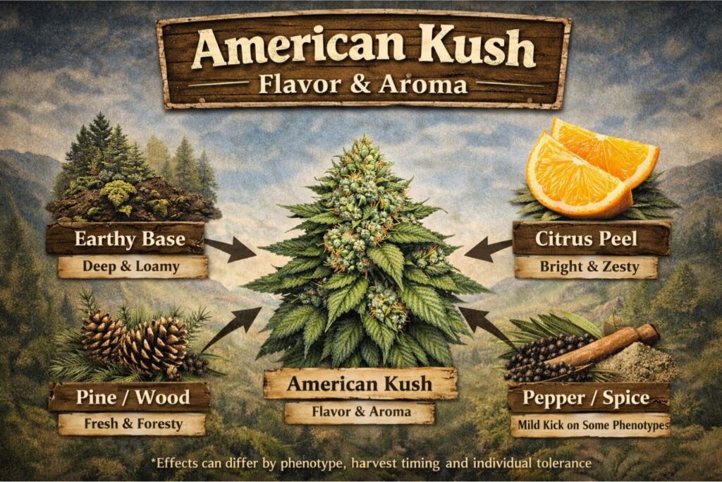 If you want a clearer picture, I’ll also give an American Kush strain terpene breakdown based on aroma and flavor cues, not lab testing. My American Kush strain terpene breakdown, in plain grower language, is “earth + pine + citrus” with a little peppery edge on some phenos. If your American Kush strain terpene breakdown seems flat, the cause is usually drying and storage, not the seed alone.