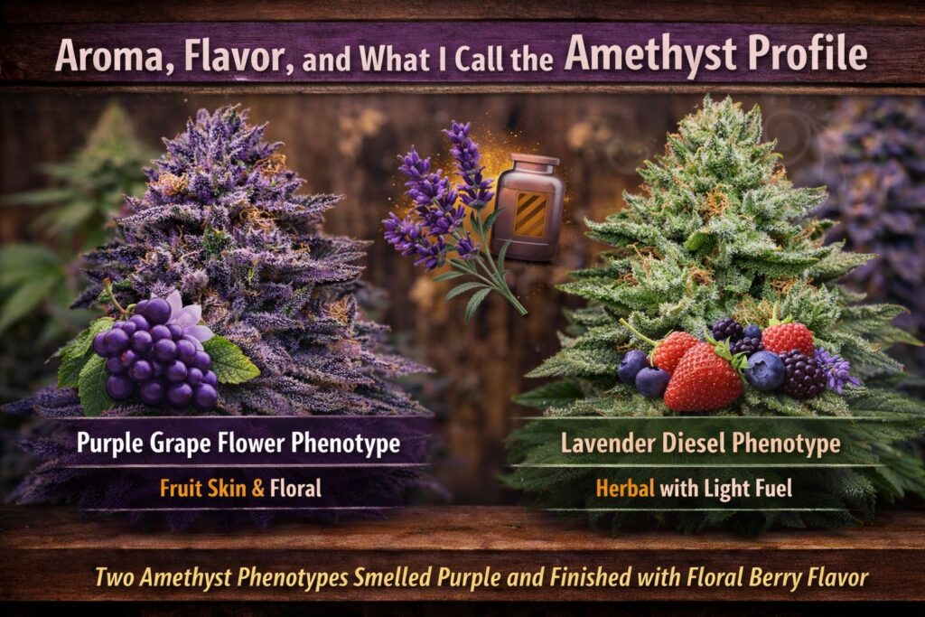 If you’re writing a description, the honest combo from my jars was purple grape flower aroma plus a lingering lavender berry aftertaste, with the full character showing up after a proper cure.