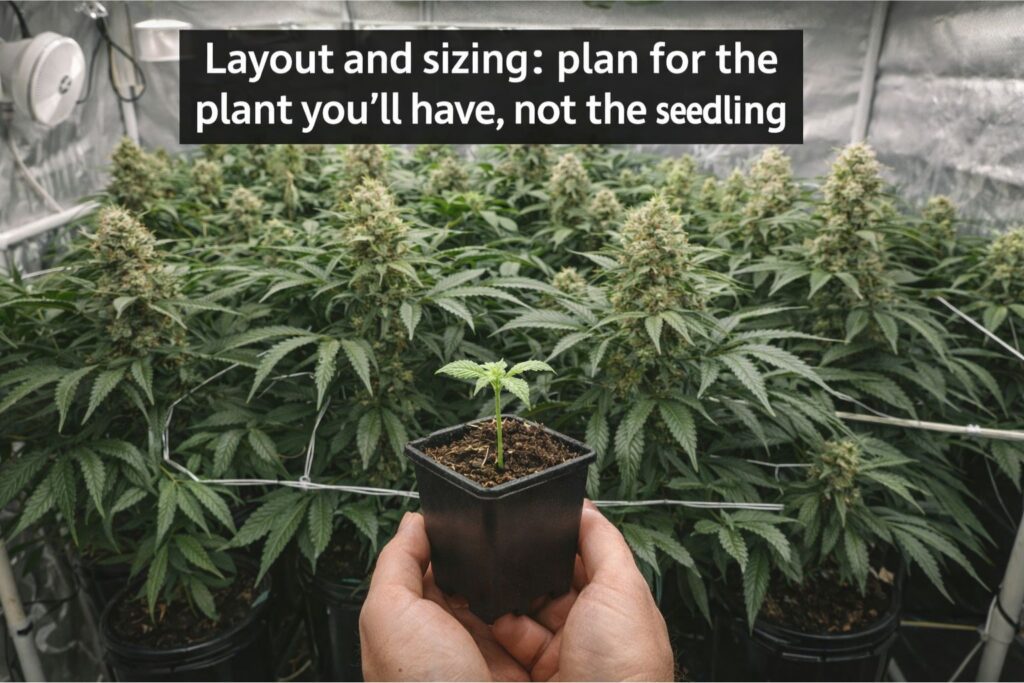 A seedling looks tiny, but a healthy cannabis plant fills a footprint fast. Before you decide on a tent size or a closet conversion, plan the canopy and the walkway. Crowding is the easiest way to create humidity pockets, leaf overlap, and disease pressure.