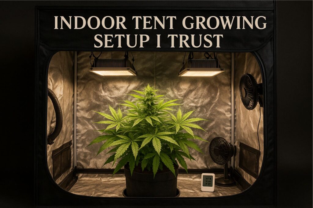 My standard indoor tent growing footprint is 2×4 feet with a 6-inch exhaust, carbon filter, and oscillating fans. Passive intake plus pre-filters keeps dust down, which helps with pest and disease control later. This compact system has produced reliable marijuana with full flavors as long as I keep RH and VPD in check.