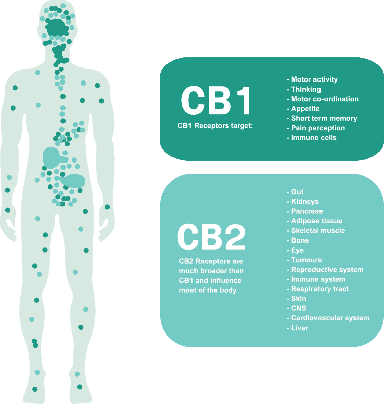 - CB2 Receptors: CB2 receptors are primarily located in the peripheral nervous system and immune cells, such as the spleen and white blood cells. They are involved in regulating immune function, inflammation, and pain. Activation of CB2 receptors does not produce psychoactive effects, making them a target for anti-inflammatory and analgesic therapies.