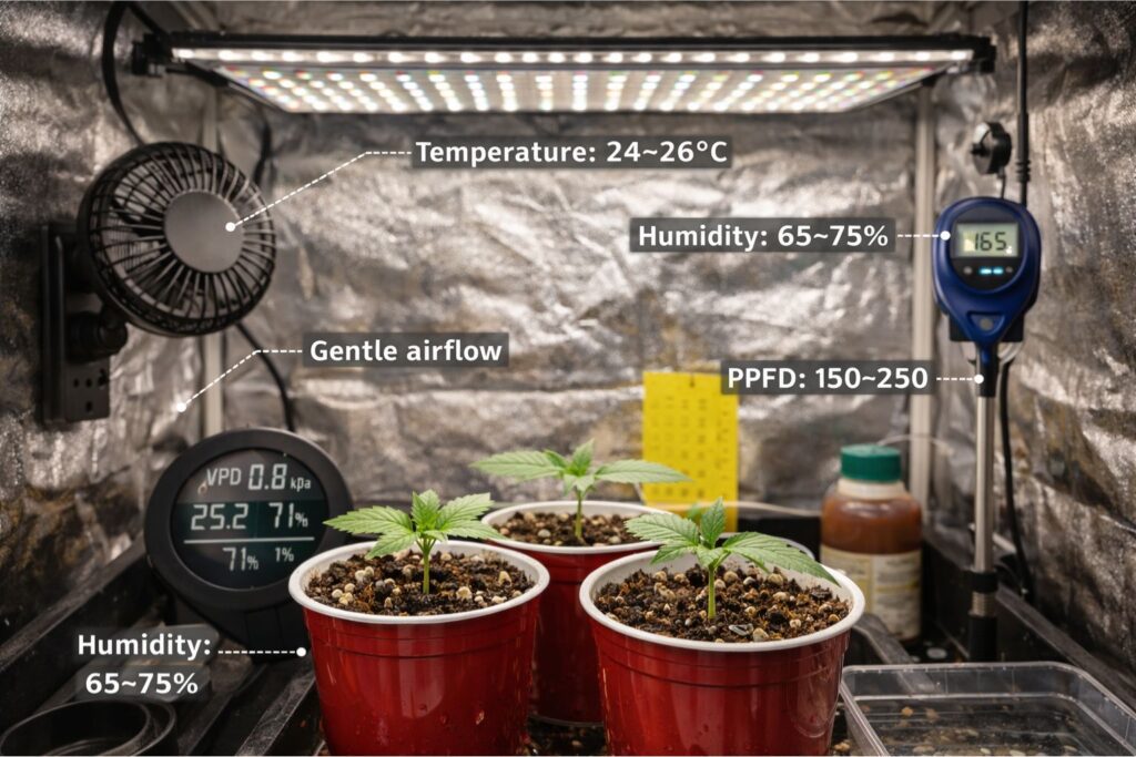 I check VPD for cannabis seedlings at least twice per day during the first week, because the tent changes after lights-on and right before lights-off. Once I learned to hold VPD for cannabis seedlings steady, the rest of my routine got easier.