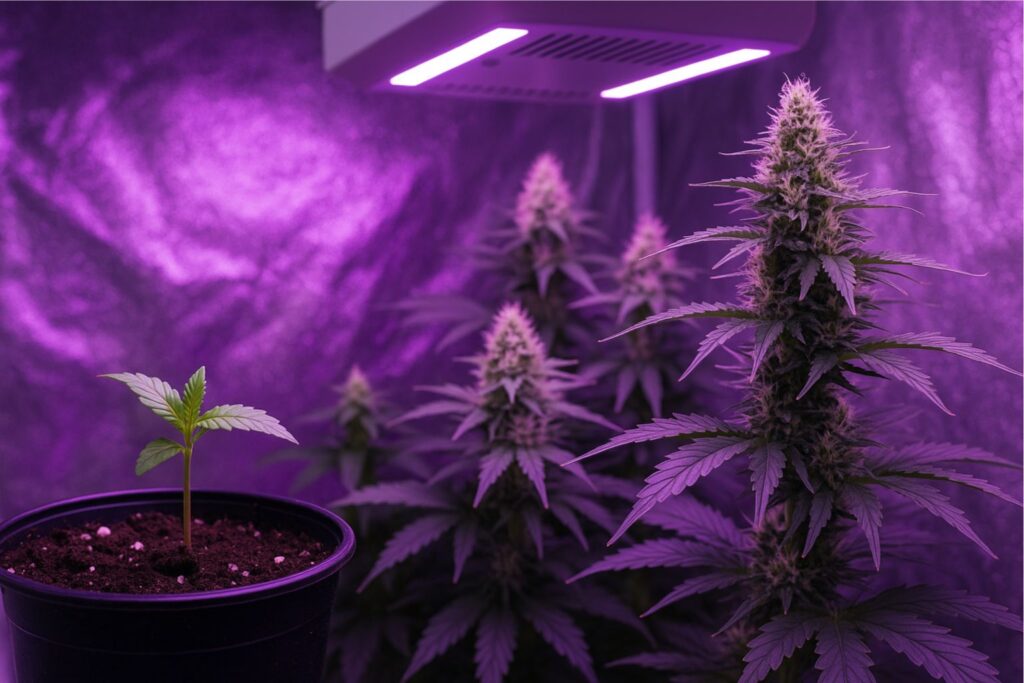 If I had to pick the most fragile phase, it would be seedlings. They don’t need much PPFD for indoor cannabis at this point; they need stability. Burning them with overly strong LEDs is one of the most common mistakes I see.