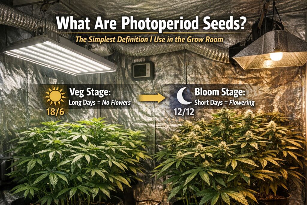 When people ask me, “what are photoperiod seeds,” I answer it the same way I teach new growers in my own garden: these are light-cycle cannabis seeds that stay in vegetative growth as long as they receive long days, and they begin flowering when the day length gets short enough. In an indoor tent, that usually means I keep plants under 18/6 (or 20/4) for vegetative growth and then trigger bloom by switching to 12/12.