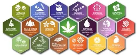 The characteristic smell of cannabis comes primarily from terpenes aromatic compounds also found in fruits, herbs, and spices. The most common odor-contributing terpenes include: