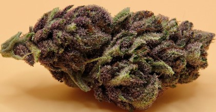 - Buds: Large, spade-shaped, and tightly packed. The nugs are light green with streaks of deep purple and are covered in a generous layer of milky white trichomes.