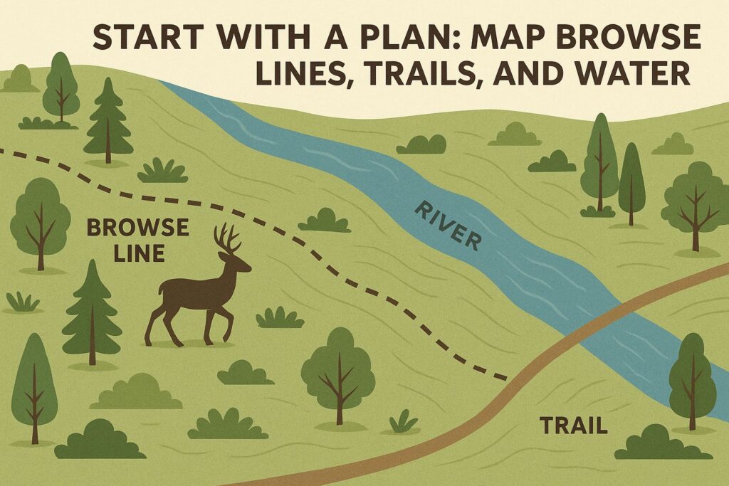 - Map trails and browse lines before planting.