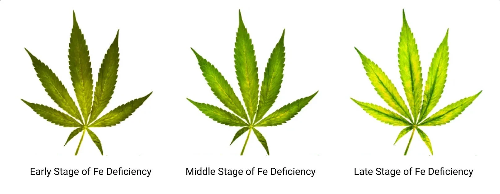 Deficiency and Excess of Iron in Cannabis Plants