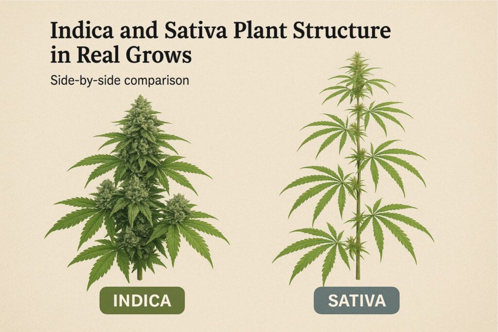 Indica and Sativa Plant Structure in Real Grows
