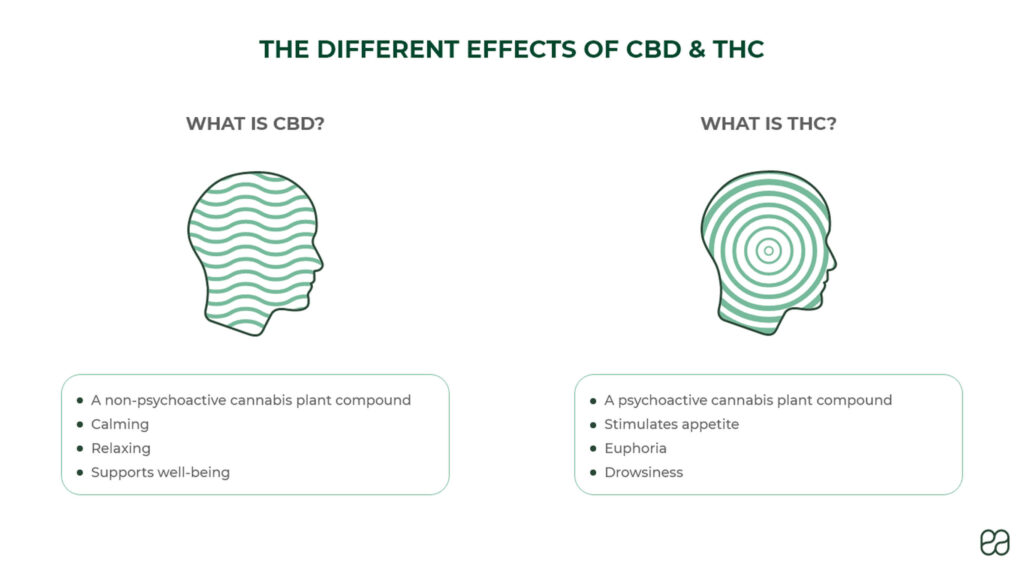 CBD’s psychoactive effects are distinct and more subdued compared to the intoxicating effects of THC, focusing more on mood stabilization and cognitive health.