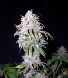 The flowers are compact and tend to cluster, with a rich coating of crystals that contain the primary active compounds, including tetrahydrocannabinol (THC) and cannabidiol (CBD), along with various terpenes that contribute to the strain’s aroma and effects.