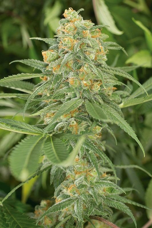 Bright orange pistils thread through the buds, offering a stark contrast against the greenery and adding to the strain’s allure. While these pistils play a vital role in the plant’s reproductive cycle, they also enhance its aesthetic, contributing to Green Crack’s dynamic and captivating appearance.