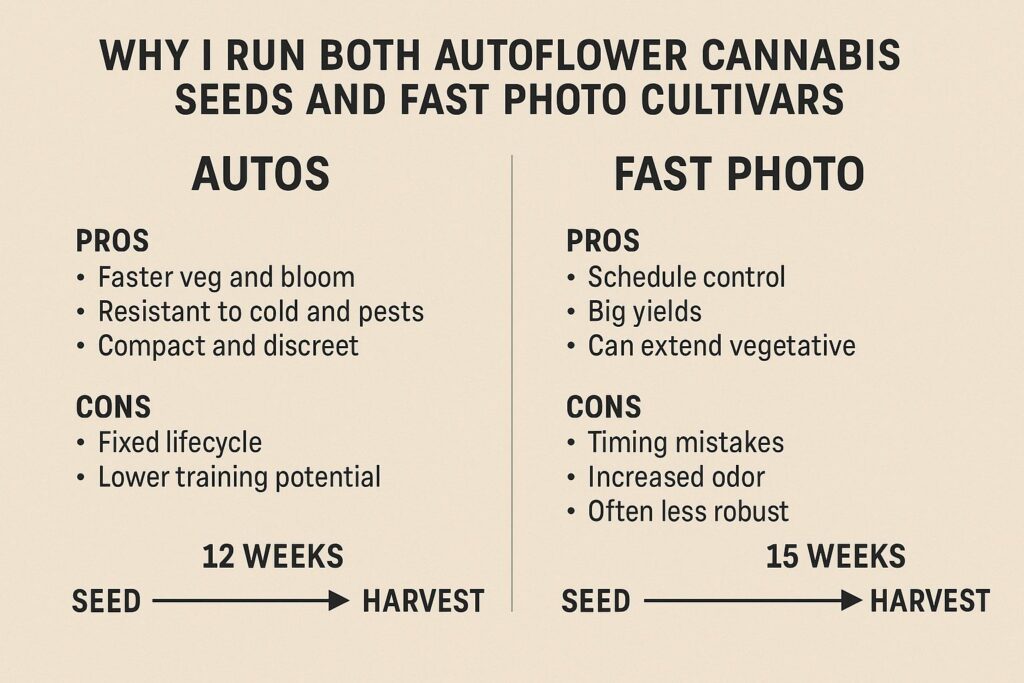 Why I run both autoflower cannabis seeds and fast photo cultivars