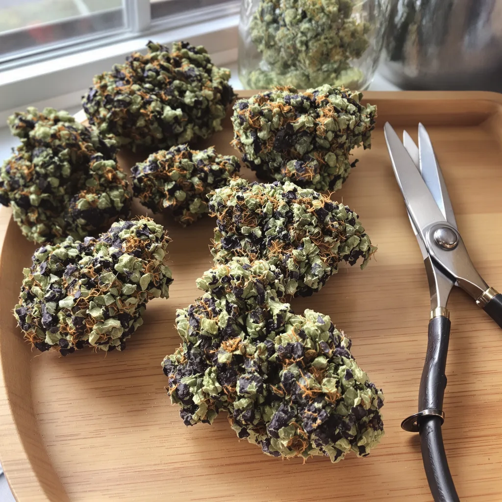 Dominant terpenes: Caryophyllene (primary), Myrcene (secondary), Bisabolol (tertiary). This combination produces a nose that develops complexity through the cure — expect the primary caryophyllene character to emerge first, with myrcene and bisabolol notes adding layers over 3-4 weeks in jars.