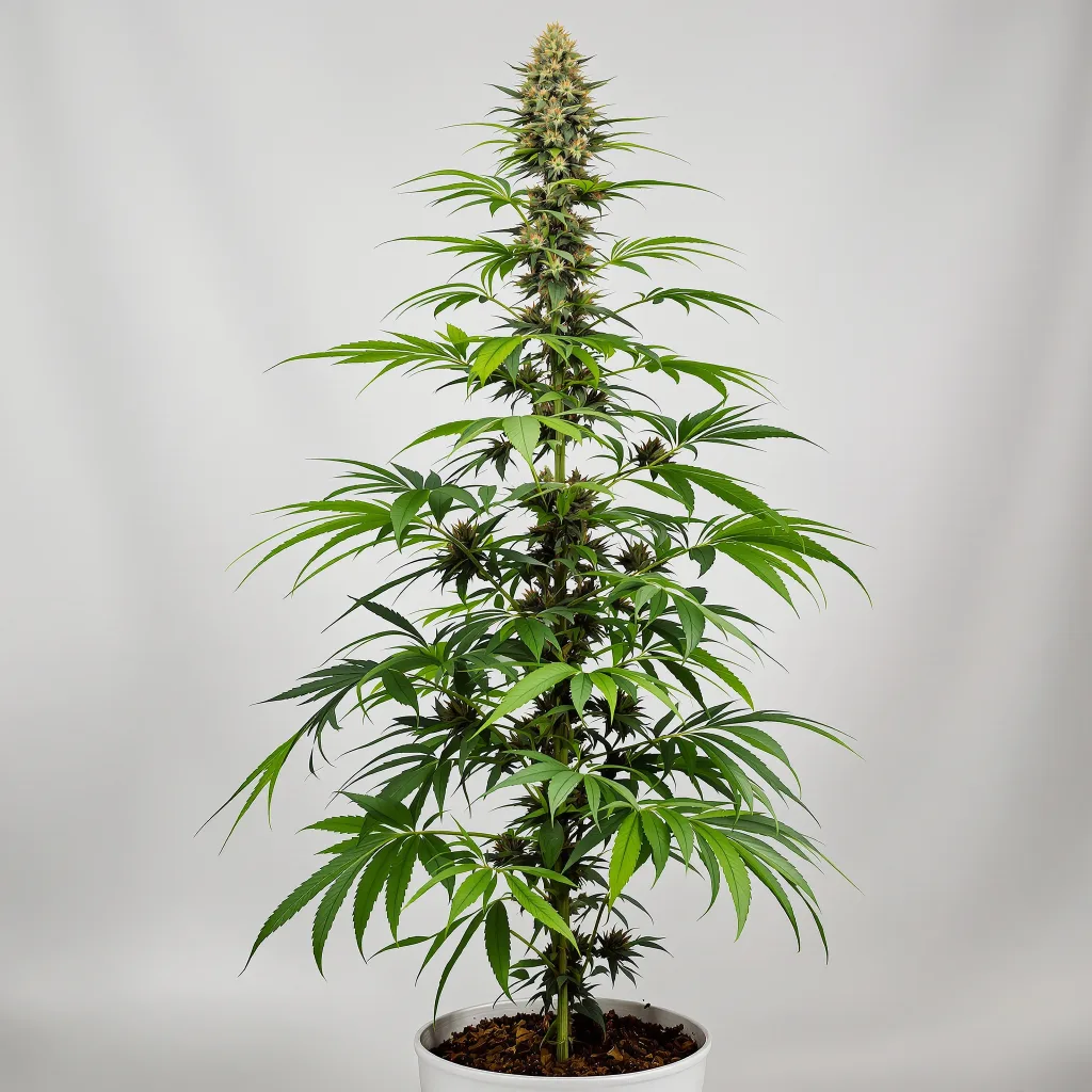 The dominant phenotype — which appears in roughly 70-75% of seeds — produces a taller, more open plant with narrower leaf fingers and elongated bud structure. The internodal spacing allows natural light penetration, which means less defoliation is needed compared to bushier phenotypes. Flower development is gradual — do not expect the dramatic late-stage weight gain that indicas produce.