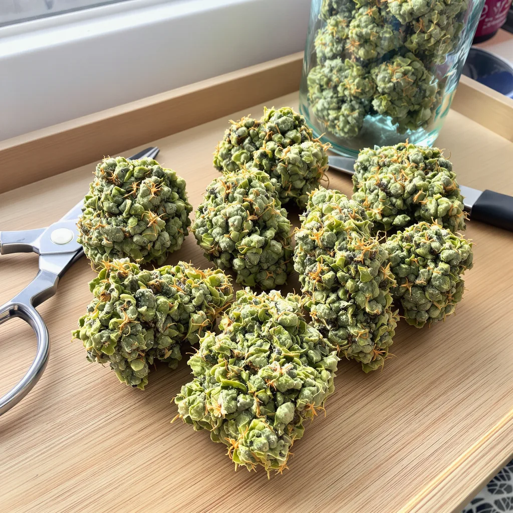 Dominant terpenes: Pinene (primary), Limonene (secondary), Caryophyllene (tertiary). This combination produces a nose that develops complexity through the cure — expect the primary pinene character to emerge first, with limonene and caryophyllene notes adding layers over 3-4 weeks in jars.