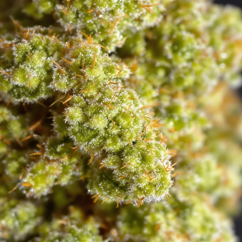 The genetic expression of NYC Sour Diesel — a 11/89 sativa — varies meaningfully across phenotypes. Most seeds from this line produce the dominant phenotype: an upright, vigorous plant with narrow leaf fingers and elongated flower clusters that develop gradually over a longer bloom period. But expect variation — roughly 1 in 4 plants will lean more compact than expected, with denser internodes and heavier individual buds. THC testing at 15% across phenotypes, with Pinene consistently dominant.