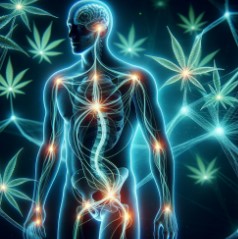 - THC activates CB1 receptors in the spinal cord, reducing pain perception.