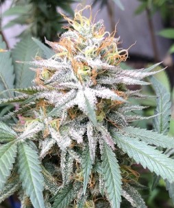 - Trichomes: White, frosty appearance due to high THC content