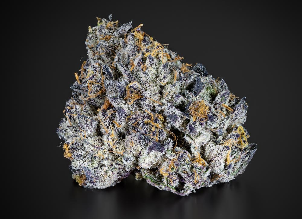 The buds of Pop Rox are dense, resin-coated, and display deep hues of purple, green, and orange. A thick layer of trichomes gives it a frosty, crystalline appearance, indicating high cannabinoid content. This strain’s visual appeal is complemented by its strong aromatic presence.