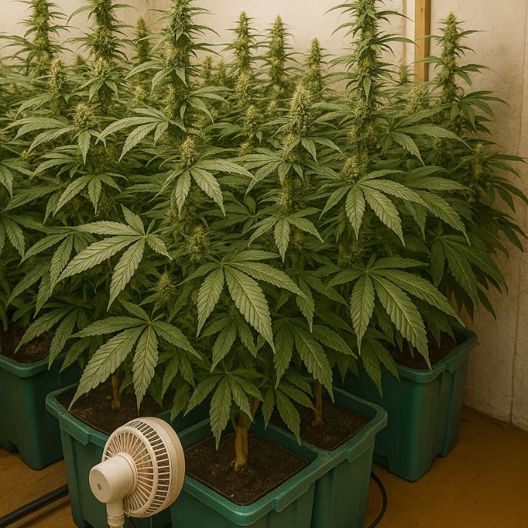 Simple techniques like low-stress training or a light trellis are usually enough to support the developing colas. Outside, this hybrid weed line can reach greater height and width when planted directly in the ground or large containers, especially in regions with long, warm growing seasons, where it has room to express its full, naturally vigorous growth pattern.