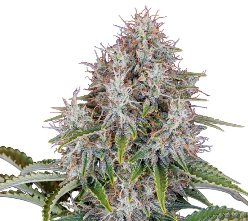 These vivid hues, especially the blues and purples, are a nod to its Blueberry lineage and can be accentuated by exposing the plants to cooler temperatures during the nighttime in their flowering phase. These colorful calyxes are densely packed, forming tight, spade-shaped nugs which are adorned with a generous layer of trichomes. This frosty, crystalline sheen not only speaks to the strain’s potency but also adds a touch of mystique to its overall appearance.