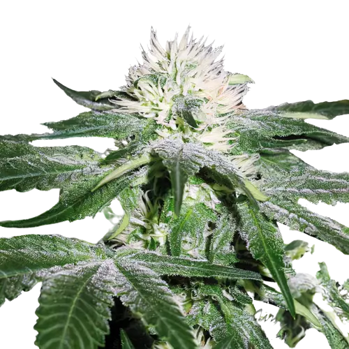 The plant’s structure is typically bushy and robust, with a sturdy stem and strong branches that support its dense, resinous buds. This growth pattern is a reflection of its Indica heritage, although the influence of Sativa genetics can be seen in its moderate height and the spacing of its branches and leaves.