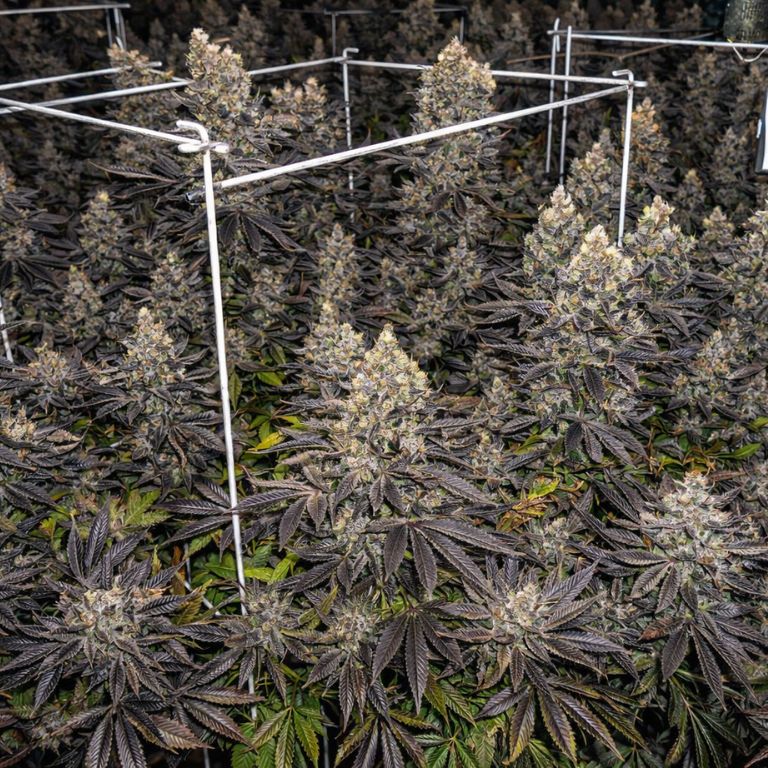 Well-grown flowers commonly finish with a tight structure and a pronounced trichome coat that gives the surface a frosted look under bright light. Many harvests present dense nighttime buds that hold their shape after drying, especially when humidity is controlled through the final weeks. Color can range from deep green to darker accents on sugar leaves depending on temperature and nutrition late in bloom. For weed buyers who judge quality by texture and resin coverage, the cured flower typically feels sticky and well-packed rather than airy.