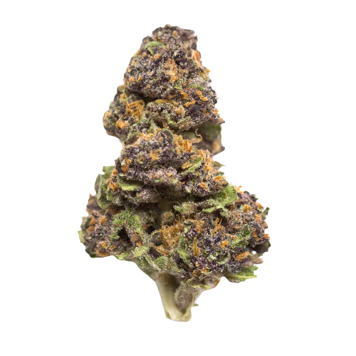 Appearance: The appearance of Scooby Snacks is a visual treat. The strain’s buds are typically dense and heavy, with a rich green hue that is interspersed with shades of purple. These colorful buds are enveloped by a generous layer of crystalline trichomes that hint at their potent cannabinoid content. Bright orange pistils curl through the frosty foliage, adding an eye-catching contrast to the overall visual presentation.