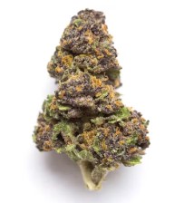Purple Sage produces dense, medium-sized buds with a striking purple hue, thanks to the anthocyanin pigments activated by colder temperatures during cultivation. The nugs are covered in a frosty layer of trichomes, indicating high resin production.