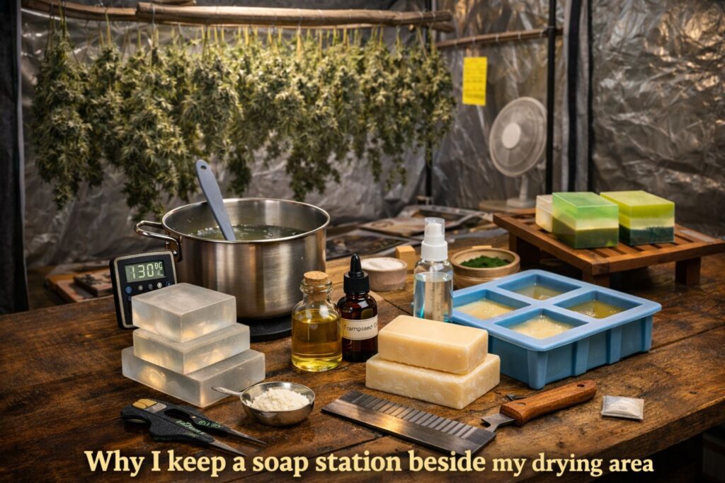 If I want a bar for the trim table, I choose a scent that reads clean rather than sweet. That keeps it useful as a marijuana trim hand soap instead of something that clashes with plant aroma. When I make a marijuana trim hand soap, I prioritize practicality: clean, mild, not overpowering.