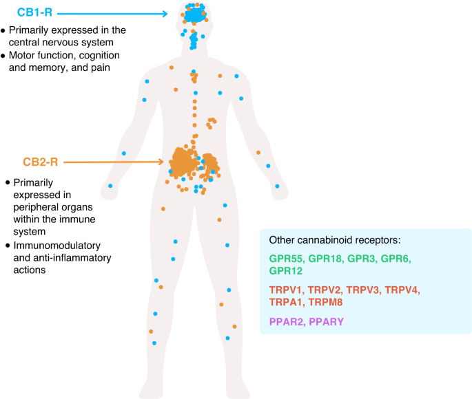 - Cannabinoid Receptors (CB1 and CB2): These receptors are widely distributed throughout the body, including the GI tract and the brain. CB1 receptors are primarily found in the CNS and ENS, where they modulate neurotransmitter release and gut motility. CB2 receptors are mainly located in immune cells, where they regulate inflammation and immune responses.