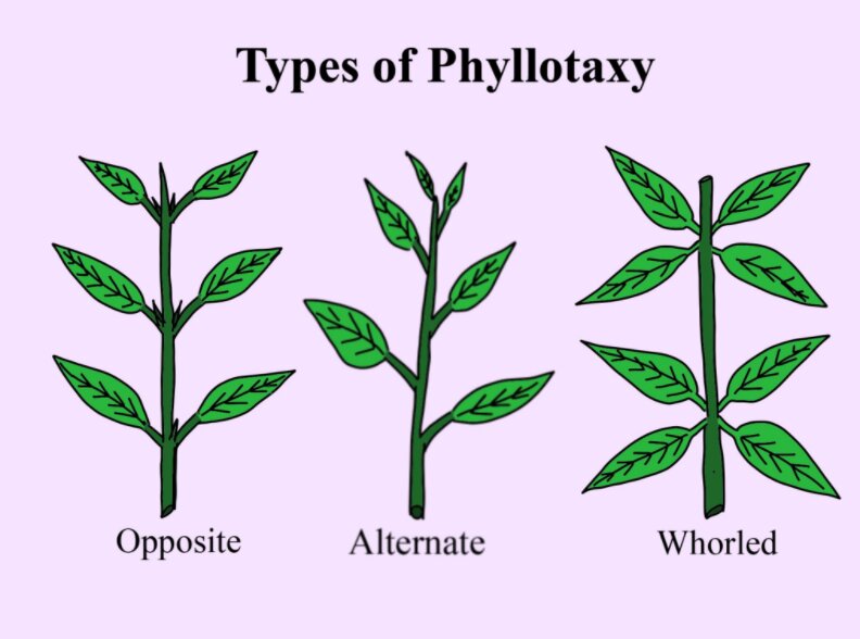 Generally, cannabis plants exhibit a decussate leaf arrangement, but as they transition into the flowering phase, the leaves might start manifesting in an alternate pattern. Notably, revived cannabis plants portray alternate phyllotaxy.