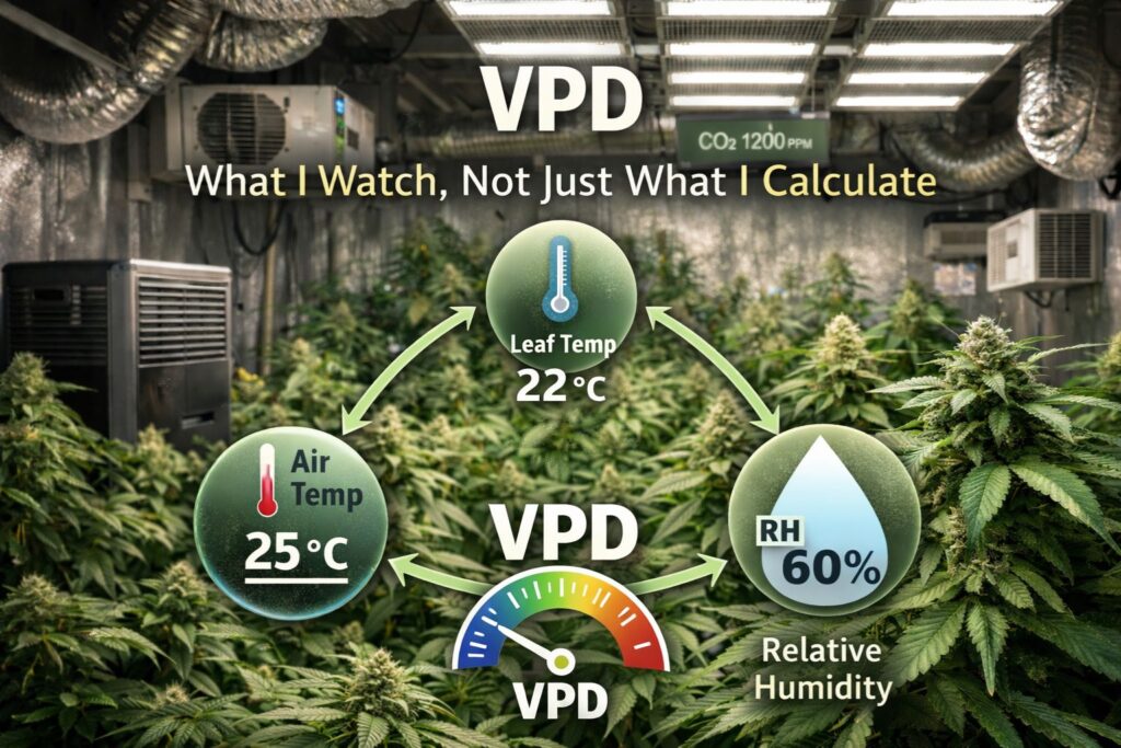 I focus on stable VPD and Humidity Control with a strong dew point safety margin. Late flower rewards consistency more than chasing an aggressive number.