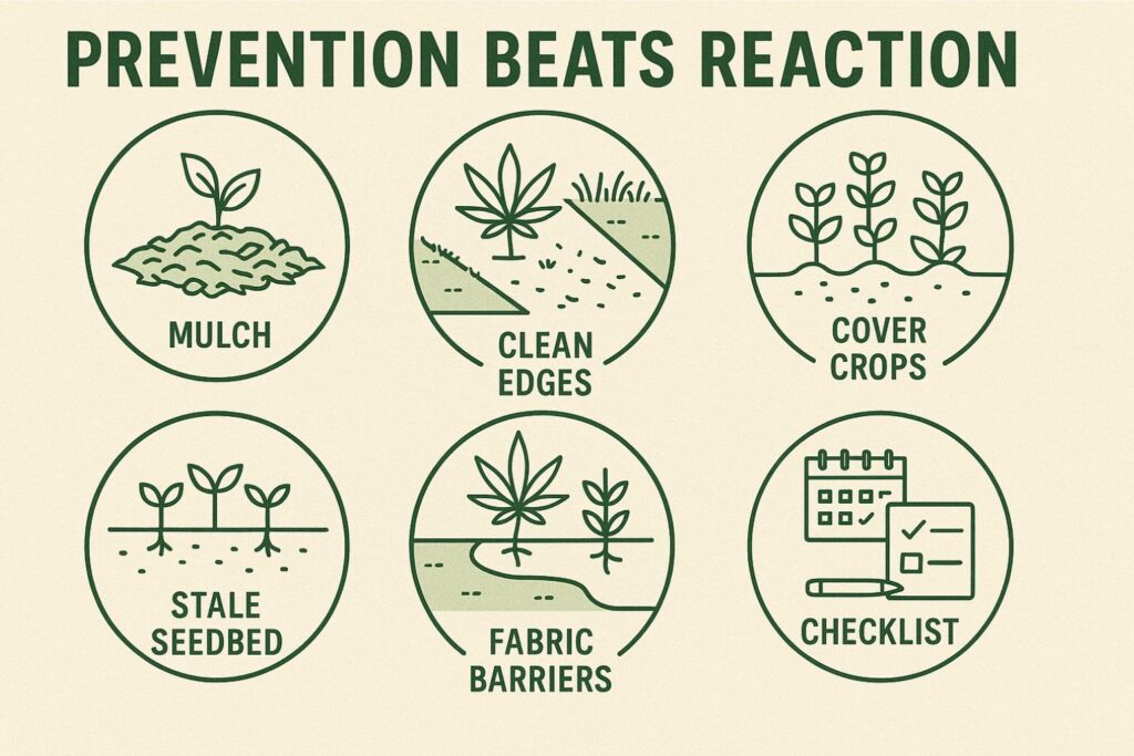When I plan a new run—whether feminized seeds in coco or autoflowers in living soil—I define the weed control approach alongside lighting, nutrients, and irrigation. If you’re building beds or up-potting seedlings after germination, choose the mulch and barrier now, not after weeds pop.