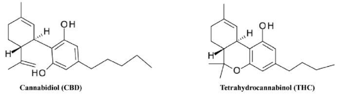 - THC (delta-9-tetrahydrocannabinol): The principal psychoactive compound. Binds to CB1 receptors in the brain and CB2 receptors in peripheral tissues.