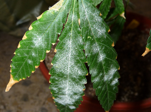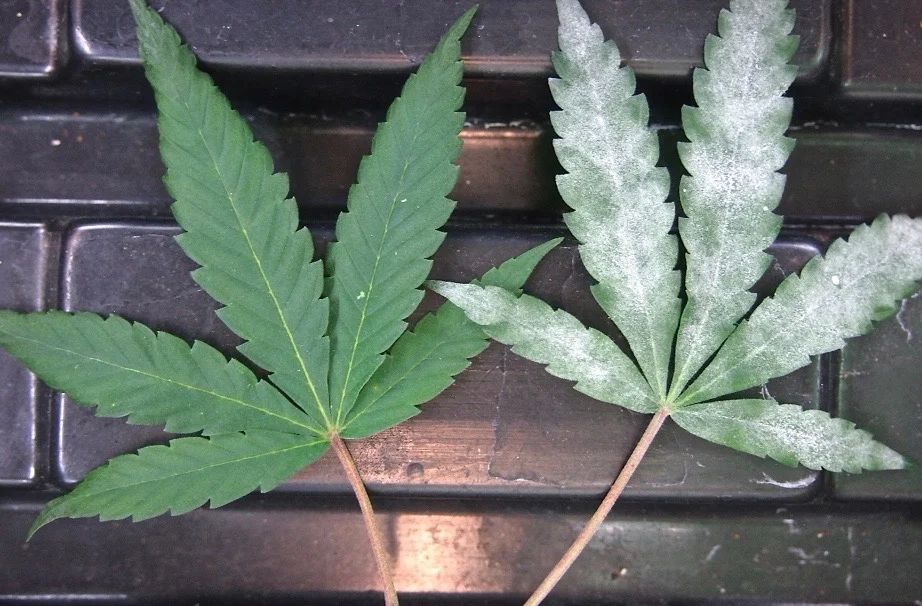 - Appearance: Appears as white or gray powdery spots on the leaves, stems, and buds of plants.