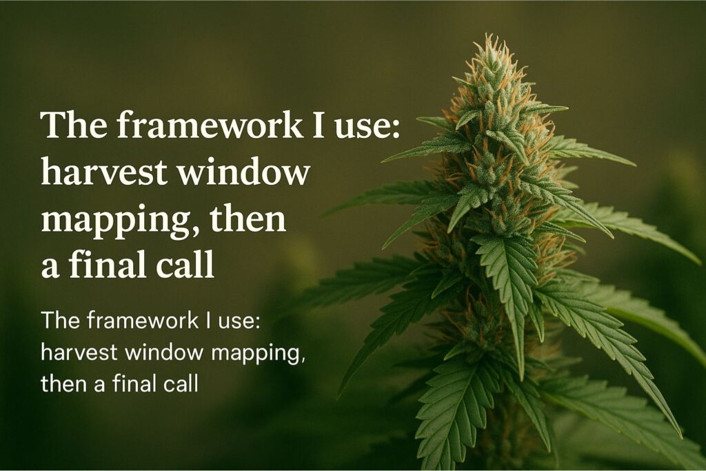 The framework I use: harvest window mapping, then a final call